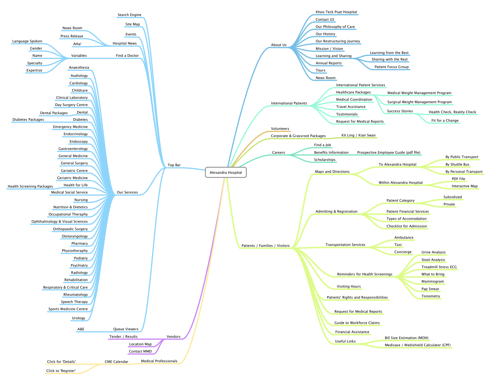We benchmarked best-in-class hospital sites (Mayo Clinic, Bumrungrad Hospital). We interviewed customer service officers and clinical staff to map friction points and understand how a better website could help educate the public. Then we scoped the work, drafted a pre-tender budget, gathered rough quotes, and ran a vendor briefing. At that time, there was even a focus on monetization with medical tourism, but that seems to be discouraged now in MOHH hospitals.