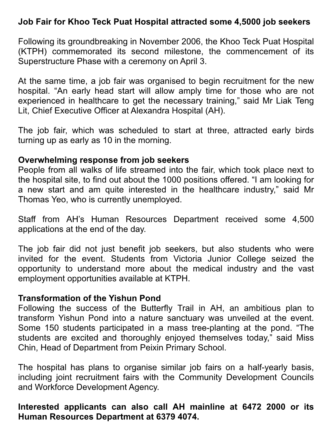 Mr Liak replied quickly and arranged an interview with Yen Tan, Director of Corporate Communications. I passed, and was given two options: